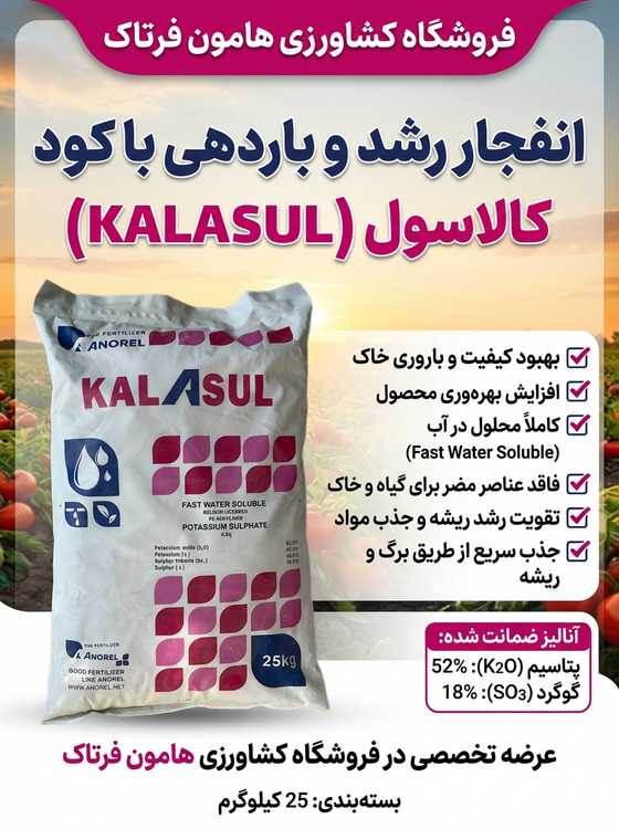 کود سولفات پتاسیم آنورل با نام تجاری کالاسول (Anorel Kalasul) یکی از برترین محصولات در حوزه کشاورزی است که توسط کمپانی آنورل بلژیک تولید می شود. این شرکت به عنوان یکی از پنج تولیدکننده بزرگ انواع کود در قاره اروپا شناخته می شود و محصولات آن به دلیل کیفیت بالا و اثربخشی سریع مشهور هستند.